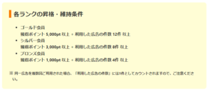 - 一定のポイント数と広告利用数を達成すると、ゴールド会員に昇格。