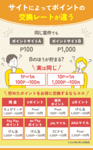 一方で、ゲームやアプリダウンロード案件が少ない点や、交換レートの変動には注意が必要です。