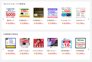楽天市場やYahoo!ショッピングなどのECサイトでポイントを二重取りできるのも魅力。「貯まりにくい」という口コミもありますが、高額案件は230件と平均並みで、クレジットカード申込やゲーム案件でもしっかり稼げます。