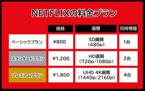 Netflixでは、以下の3つの料金プランが用意されています。