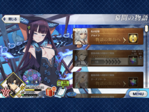 幕間の物語は、サーヴァントそれぞれの個別ストーリーです。ここでは、サーヴァントたちの過去や成り立ちが深堀りされます。クリアすることで聖晶石やスキル強化、宝具の強化などの報酬を得ることができます。非常に面白いエピソードが多いため、育成したサーヴァントに関する幕間の物語をクリアすることをお勧めします。 -