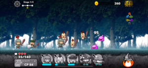 ゲームの基本はシンプルで、時間経過で貯まる「CP(キャットパワー)」を使い、戦士やアーチャー、魔法使いなどの仲間を召喚して、シロちゃんを守りながら敵を撃退していきます。序盤は低コストのユニットで敵を食い止め、タイミングを見計らって強力なキャラを投入するのがポイント!