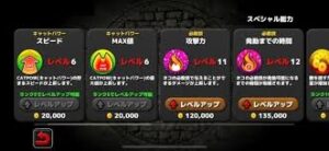 特に「キャットパワースピード」の強化は超重要!CPの回復速度が上がれば、より早く仲間を召喚でき、バトルが有利に進みます。他にも「戦闘後の小判獲得量アップ」など便利な能力が揃っているので、計画的に強化していきましょう。