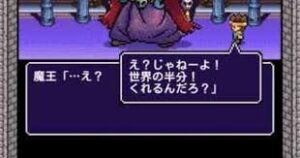 …が、肝心の魔王は予想外に弱々しく、なんと命乞いをして「世界の半分あげますから許してください!」と泣きついてくる始末。