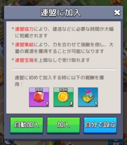 連盟に加入することで、資源の支援を受けられたり、一緒に大型イベントに参加したりと、より一層深いゲームプレイを楽しむことが可能です。